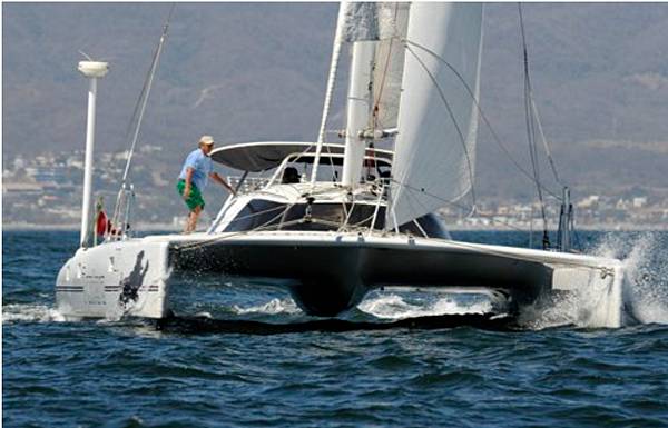 規格:LOA船長45呎,LWL水線長45呎,BEAM寬23呎7.0m,中央船體寬9呎2.8m,船重3500KG,水箱400Lx2,油箱200L-400L,主帆48M,前帆40M(有各種賽帆),內部可睡8-12人,客廳可睡4人,中船體可訂做大小配置各種需求,越大越重,高強度動力船用雙船外機座,裝一台200hp,前駕駛,大遮陽棚,有左中右抽水系統壓艙,有冷氣發電機,太陽能板,電動絞盤,船首側推.掛200hp 船速最高25節,12節風側順跑10節,12節風頂風跑8節,有1000cmX440cm的甲板空間可使用與規劃房間有設計圖可看.
