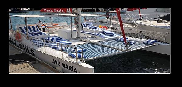 很多人不曉得他們買的帆船不太可能這樣玩,不是說誰的船好不好的問題,因為框架就是這樣了,也許是這樣的原因,推動帆船旅遊特別困難: 例如當您澎湖蘭嶼綠島玩夠後,一定要去全球公認最美的島嶼-菲律賓,您要去一定要先去蘇比克灣,單體帆船要開四天三夜航,且等巴士海峽有2-3天3米浪,1-2天1米浪最佳狀況,到了那裏船員已經疲累不堪怎麼玩? 但是用這個雙體帆船,等1米浪的天氣白天開16節,晚上開12節,帶1000L油,先不加水,只要32小時一個夜航就可以到,一晚不太睡還很有精神玩,差別有多大?且還要再下去3天的500km巴拉望或宿霧島嶼才是玩的地方,還有回程,一般帆船來回14天誰有時間去?退休還有體力玩? 只有快速帆船能這樣讓您玩得到.